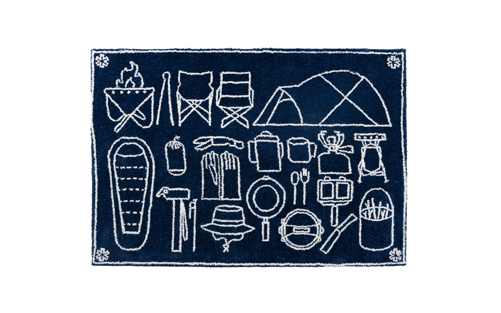 스노우피크의 캠프 기어를 자카드 원단에 표현한, 대형 플로어 러그. 성인 2명도 사용 가능한 치수로 공간 연출에 적합 사이즈입니다. ※ 실내용 제품입니다. 야외 사용은 삼가해 주십시오.